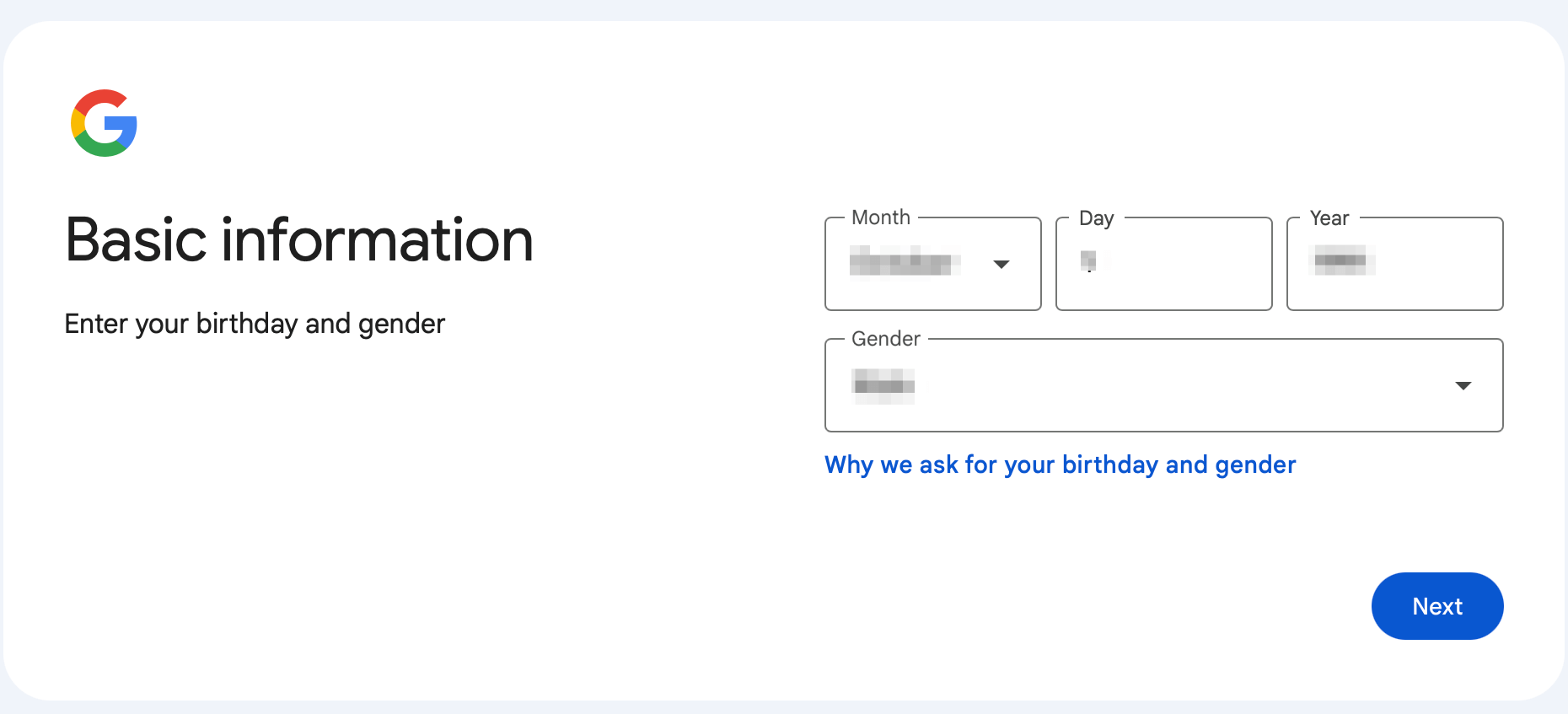 2、浏览器访问 https://accounts.google.com/signup, 填写姓名、出生日期、性别等基本信息。