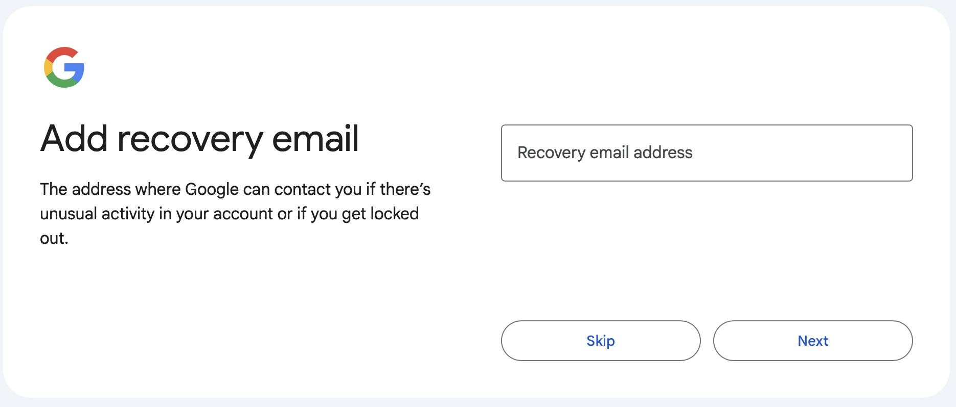 5、添加恢复邮箱。