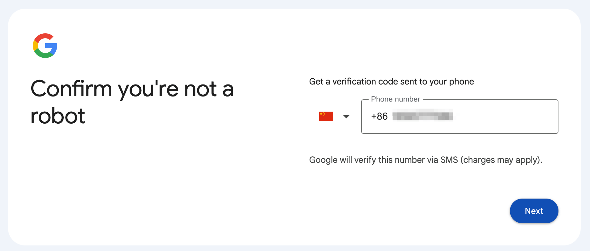 4、使用内地 +86 手机,收取验证码。