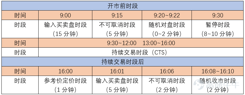 | 开市前时段 | 09:00 - 09:30 | 09:00 - 09:30 |