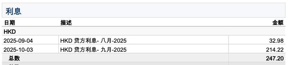 比如,这个图里显示的「贷方利息」,就是我们收到的利息。