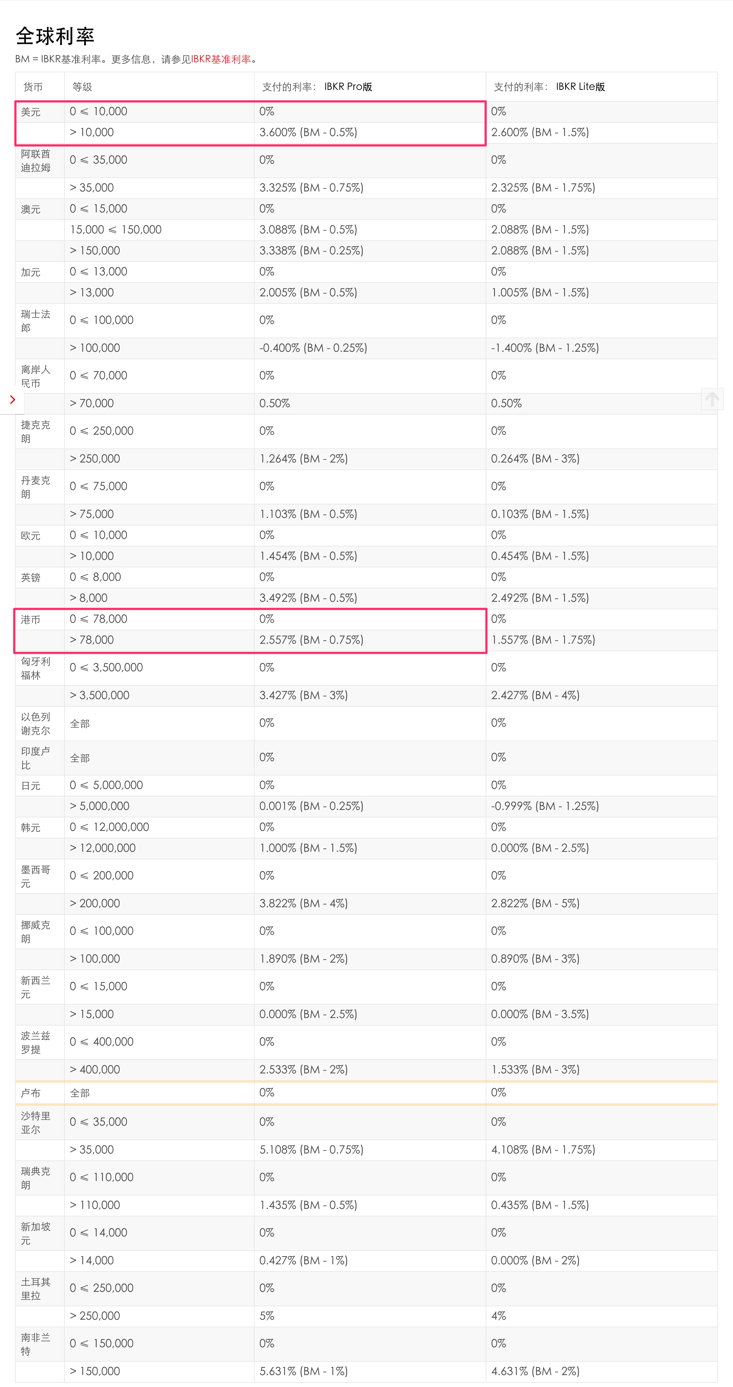 然后盈透会在这个「市场基准利率」的基础上减去固定的基点,来支付我们的现金余额利息。