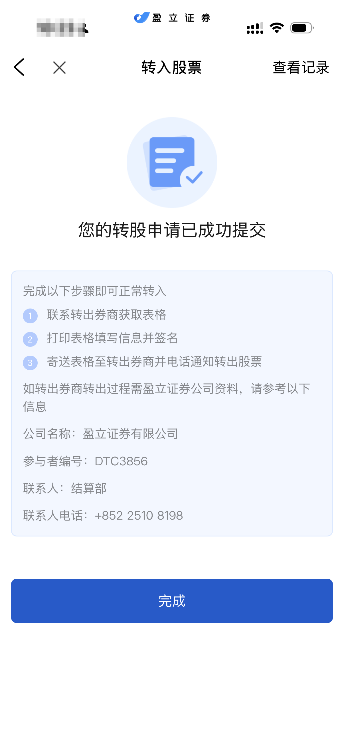 一、 在盈立香港提交转入申请