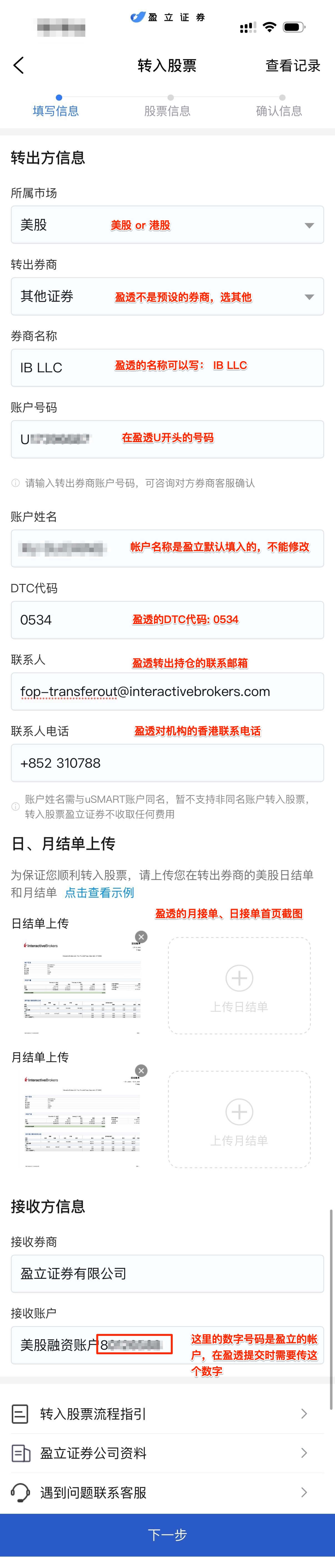 盈透证券纯券过户(FOP)转仓到盈立香港教程