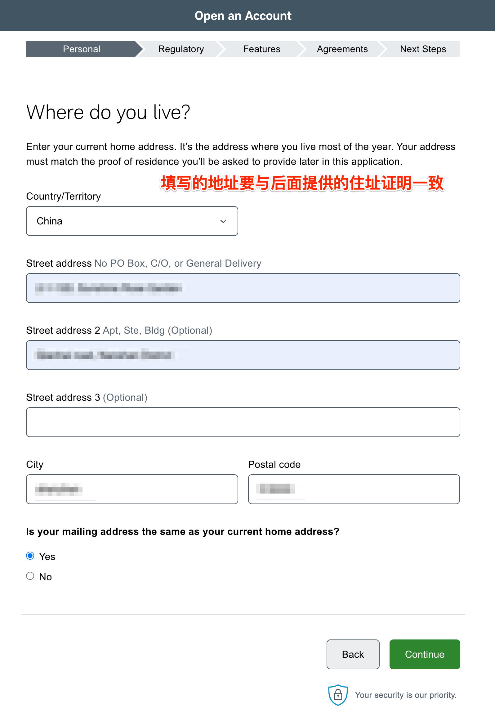 10、填写英文居住地址。