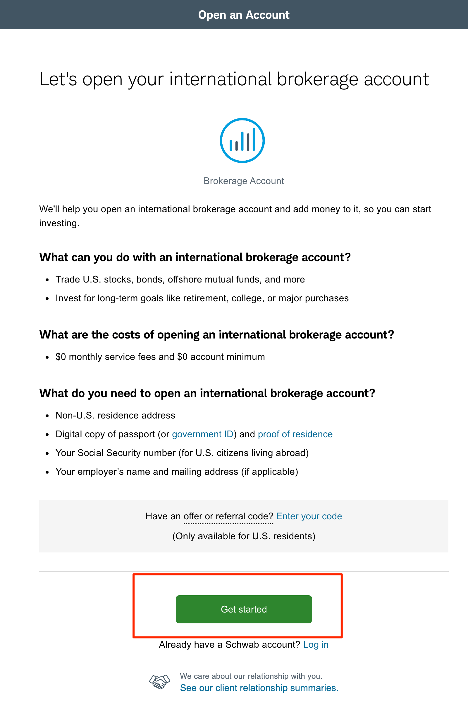 1、打开嘉信开户页面 https://international.schwab.com/