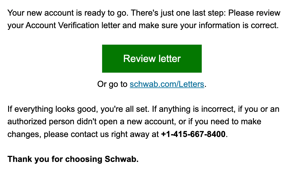 如果一切顺利的话,首先会收到一封邮件,让去"Review Account Verificaiton Letter",这时候什么都不需要做,继续等就好了。