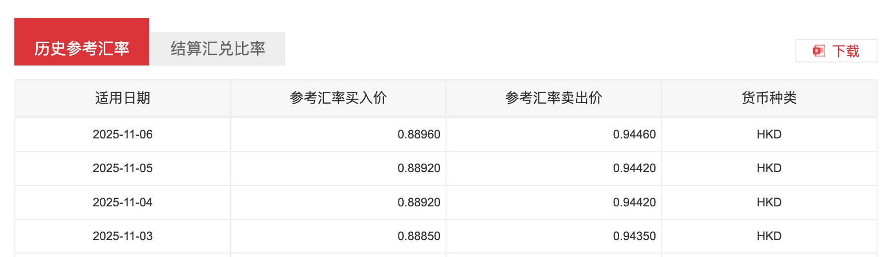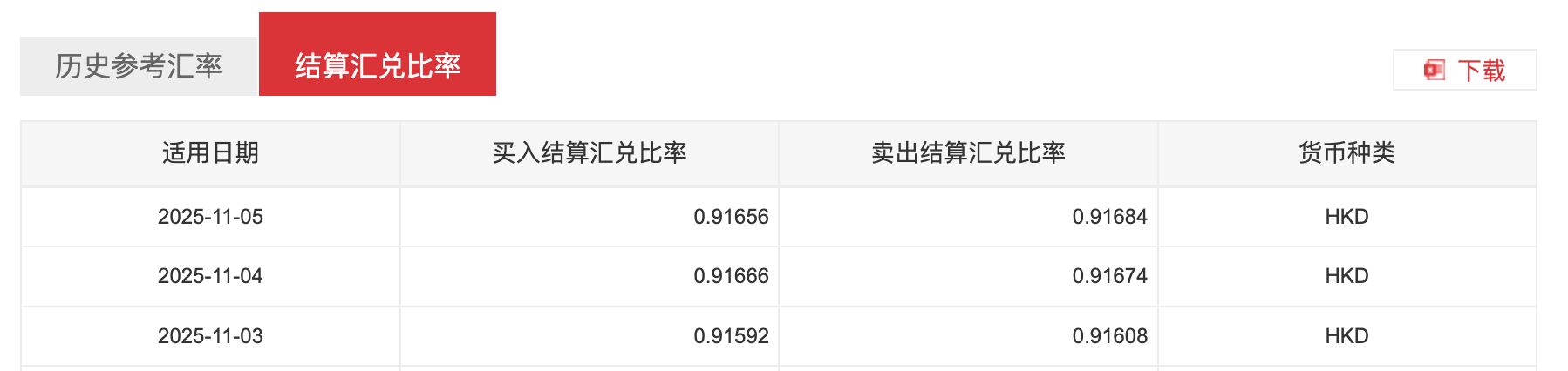 | 方向 | 港币换人民币(即买入人民币) | 人民币换港币(即卖出人民币) |