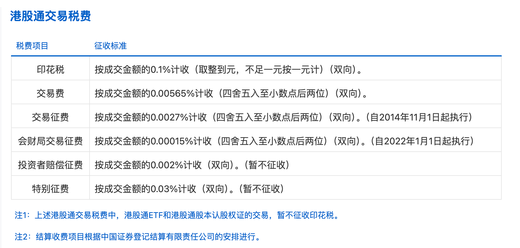 其中的大头就是香港收的印花税,买卖各0.1%,买卖交易一次的话,累计0.2%;但交易ETF是没有印花税的。
