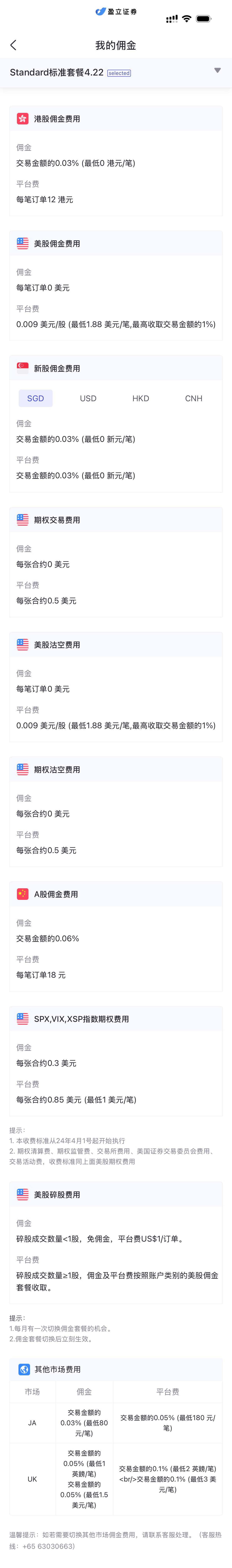 盈立证券(新加坡)佣金费率