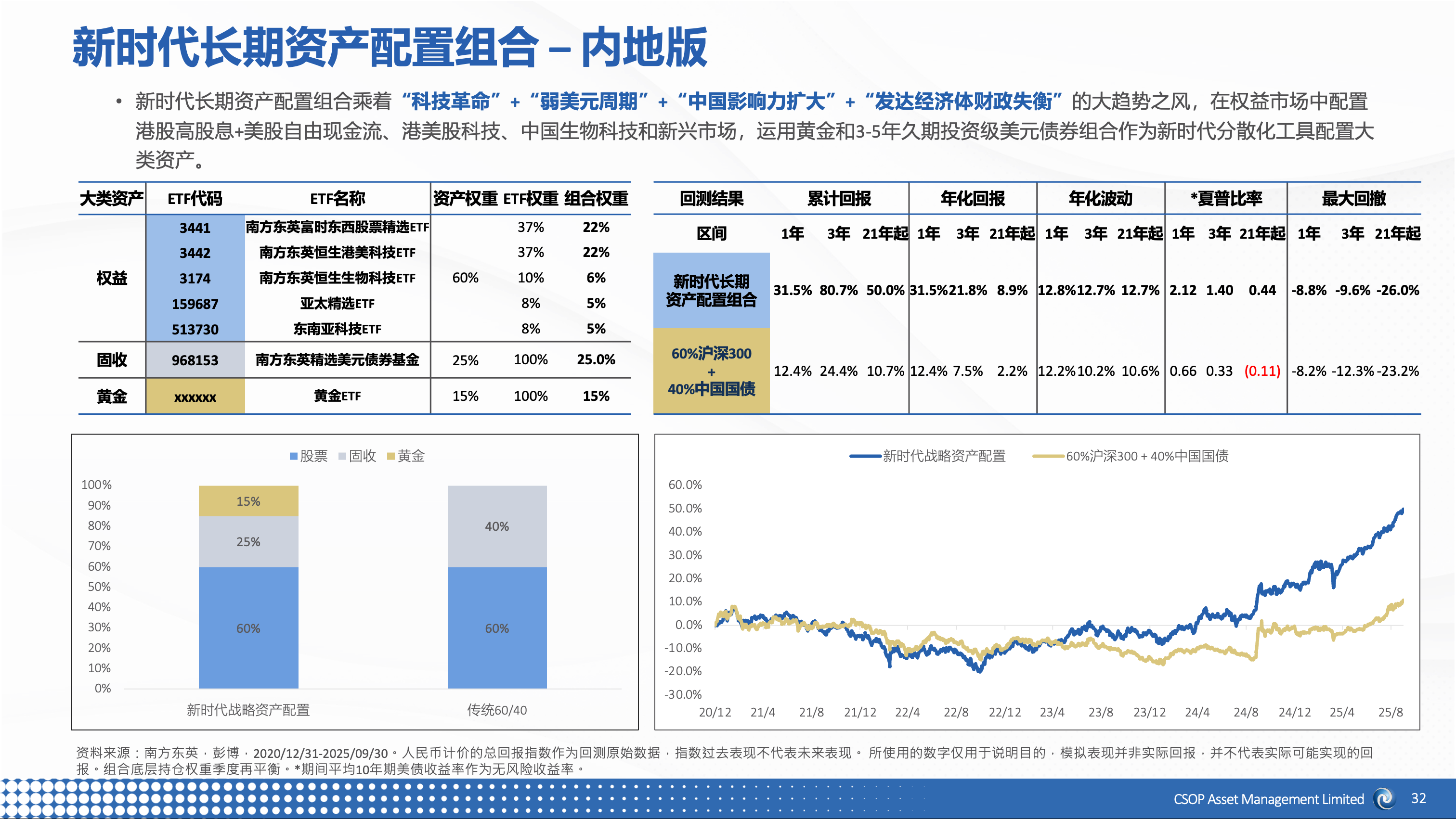 新的大类资产战略配置组合:过去60/40的股票/债券资产配置相关性波动放大,因此新时代的大类资产组合需要更多的低/负相关性资产来构建组合。