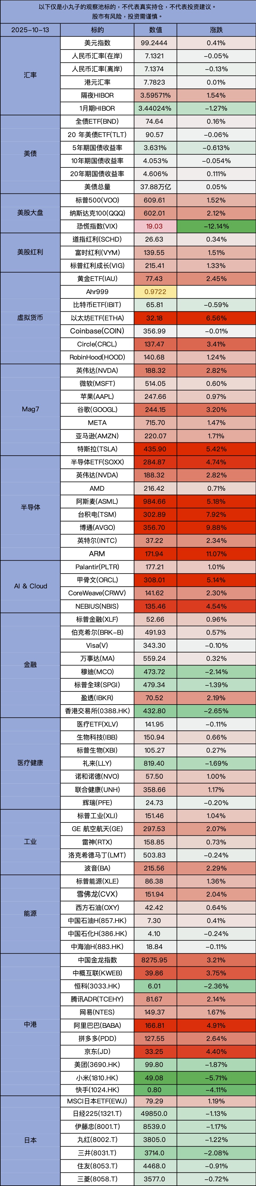 但特朗普又TACO了,发帖说"Don't worry about china",昨天周一(10月13日)白天美股期货上涨。