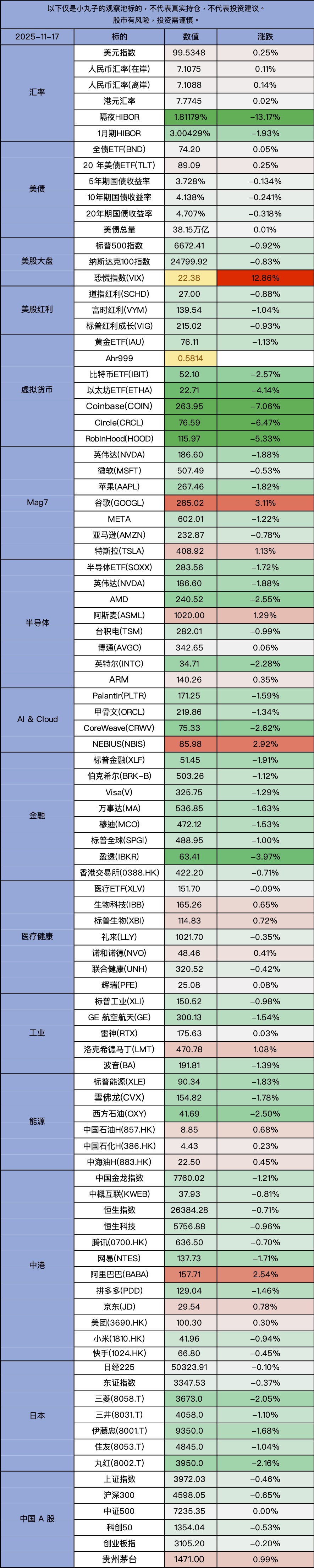 美股标普500昨天下跌了1.66%,纳斯达克100昨天下跌了2.05%,从点位上看,两大指数都还没有跌到上周五的水平,也没有跌倒10月份的水平。