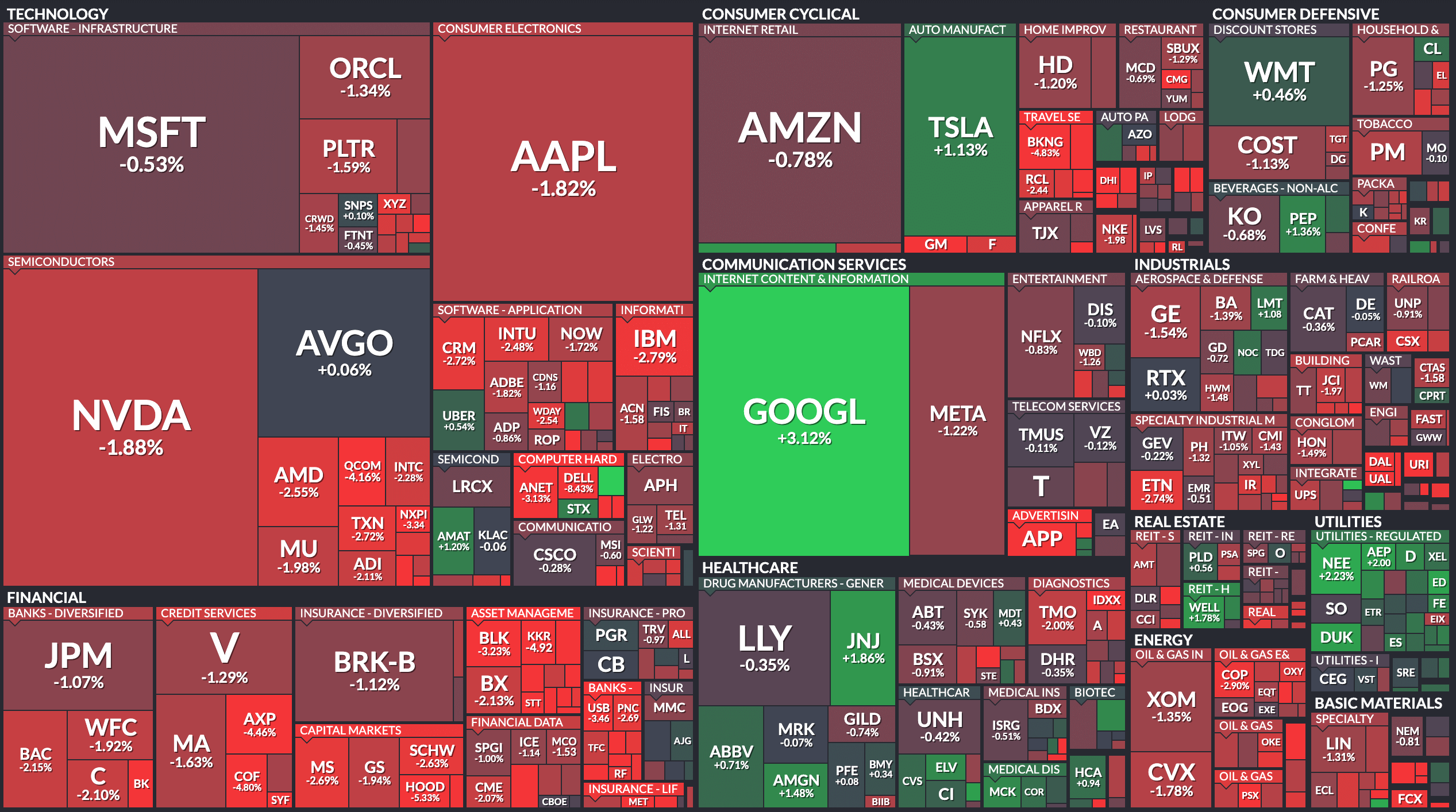 标普500成分股几乎普跌,除了Google受伯克希尔建仓买入影响,上涨3.12%,但这个涨幅也受普跌行情压制,盘中最多上涨6.3%呢。