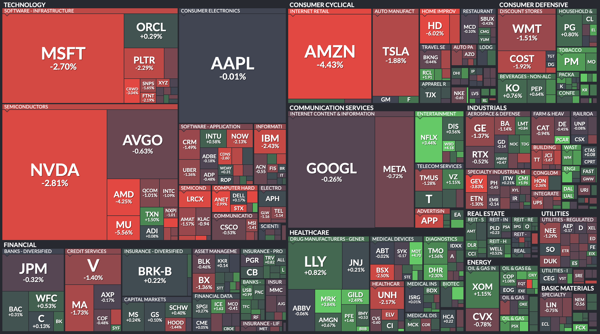 欧盟宣布对微软和亚马逊进行反垄断调查,打压了股价,微软下跌2.7%,亚马逊下跌4.43%。