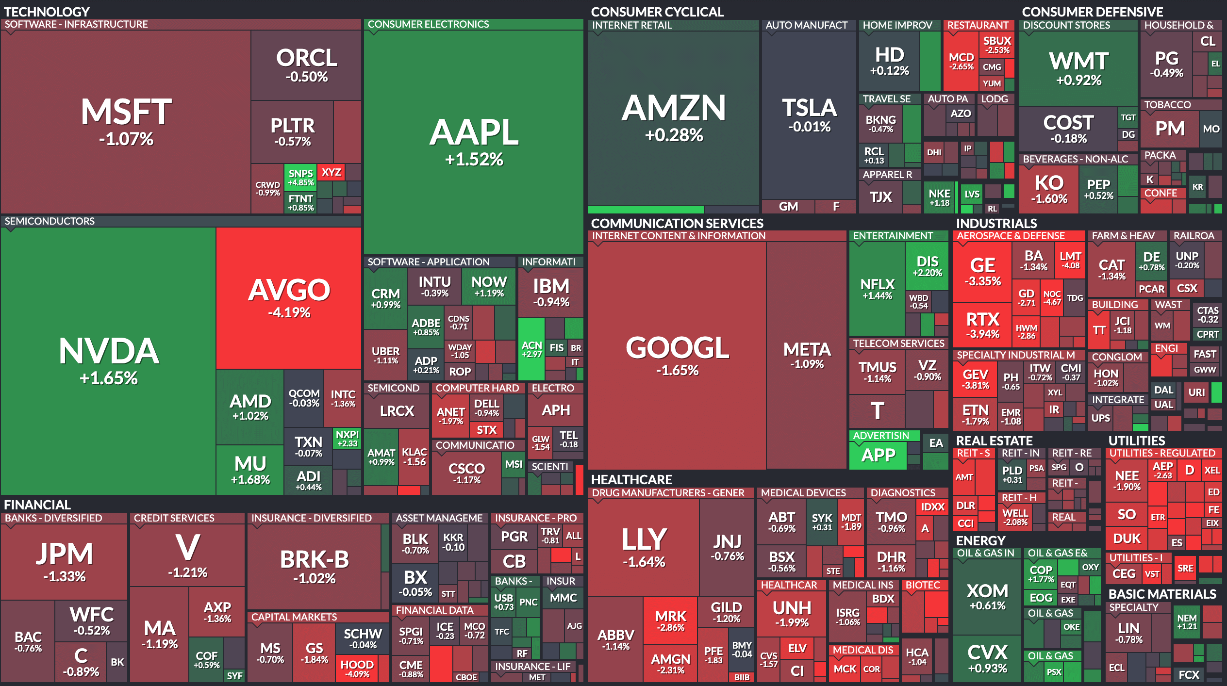 - 工业指数ETF(XLI)下跌1.46%。