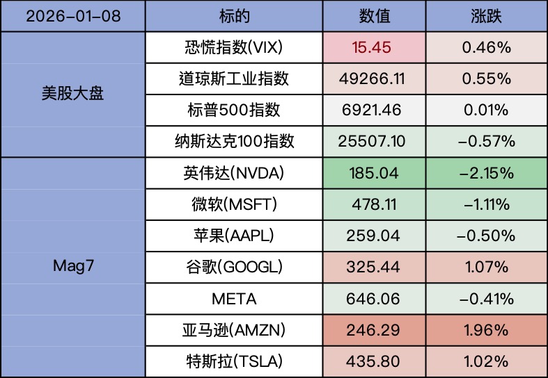 美股总体上涨乏力,道琼斯指数上涨0.55%,标普500上涨0.01%,基本持平,纳斯达克100下跌0.57%。