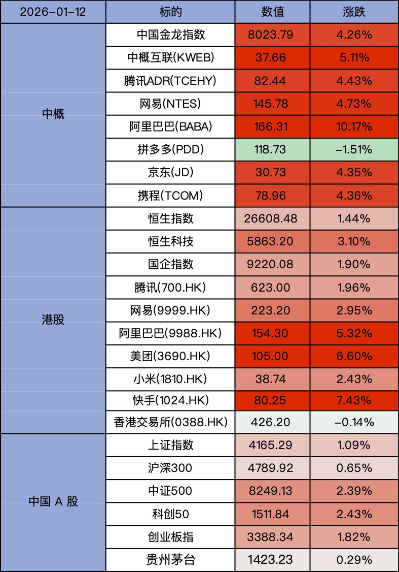 丸子早上看美股 2026-01-12