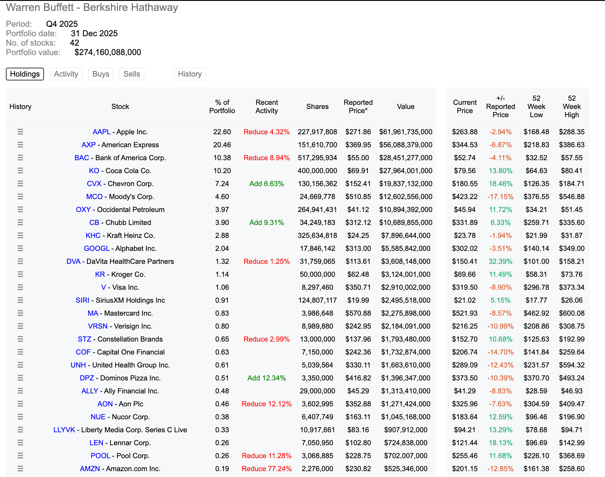 苹果减仓4.32%,美国银行减仓8.94%,减的不多,这两个仍然是伯克希尔美股里的第一和第三大仓位。
