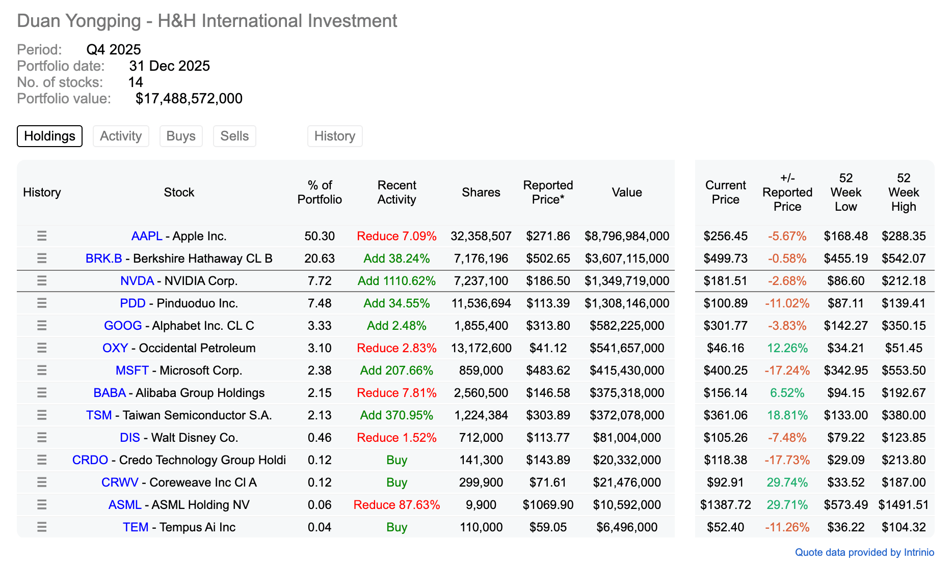段永平减仓苹果7.09%,但目前仍是占比超过50%的第一重仓。