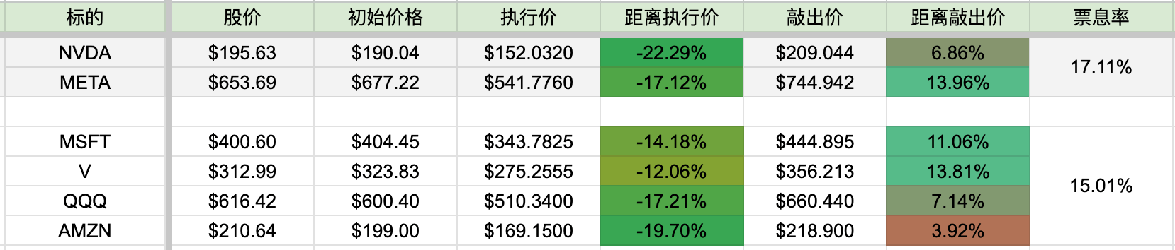 Meta下跌也不多,距离执行价还有17%的距离,敲入风险也很低。
