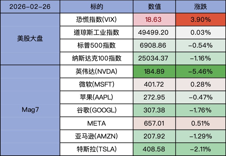 美股三大指数,道琼斯指数微涨0.03%,标普500下跌0.54%,纳斯达克100下跌1.16%。