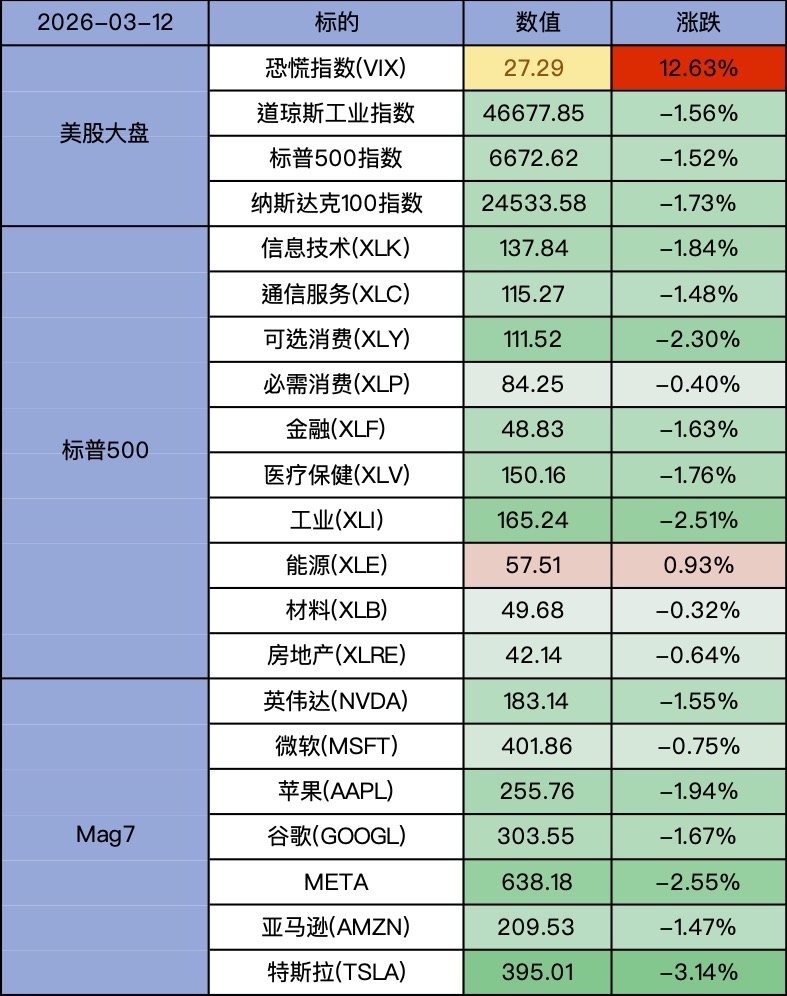 丸子早上看美股 2026-03-12