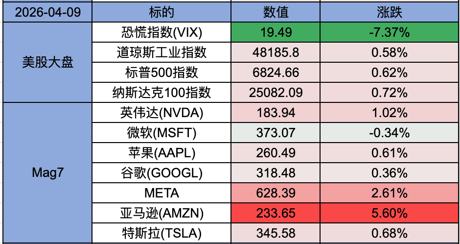 丸子早上看美股 2026-04-09