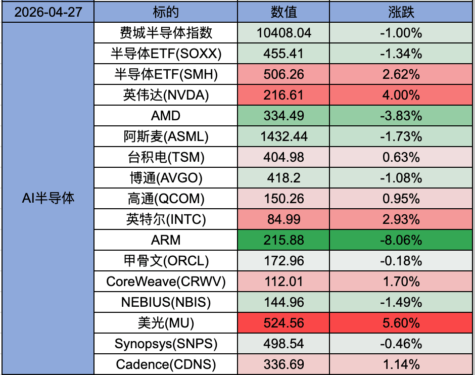 SMH已经连续4年上涨了,2023年上涨73.38%、2024年上涨39.10%、2025年上涨49.17%、2026至今上涨40.58%,后视镜看直跺脚,往前看,仍是路茫茫不知方向。