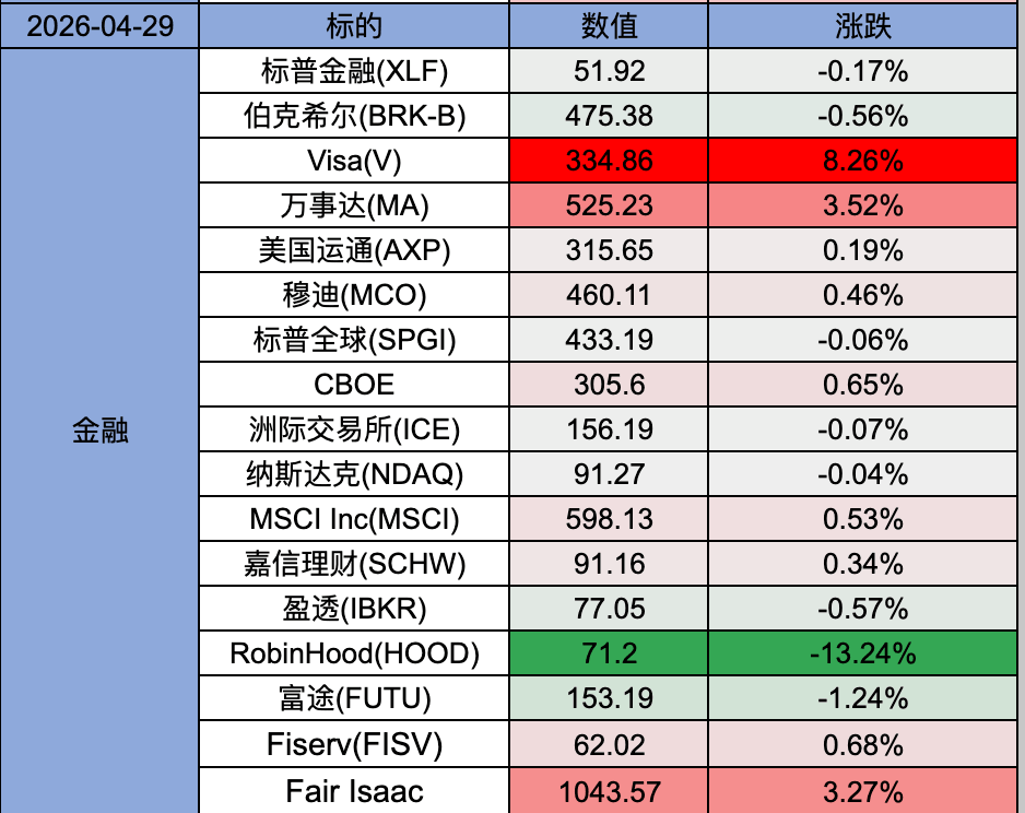 #日报# 美股4家巨无霸发财报,2涨1平1跌;美联储议息会议维持利率不变,理事分歧严重,20年美债利率升到5%;Visa上涨8.26%,我喜欢这样的公司;段永平没买上泡泡玛特,但挣了期权费,说以后不公布操作了;明天香港五一放假